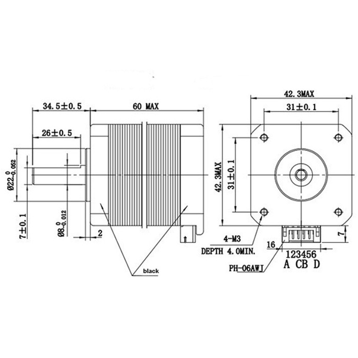 Мотор кроковий Kingroon Nema 17 для 3D-принтера, 12В, 42*60мм, чорний